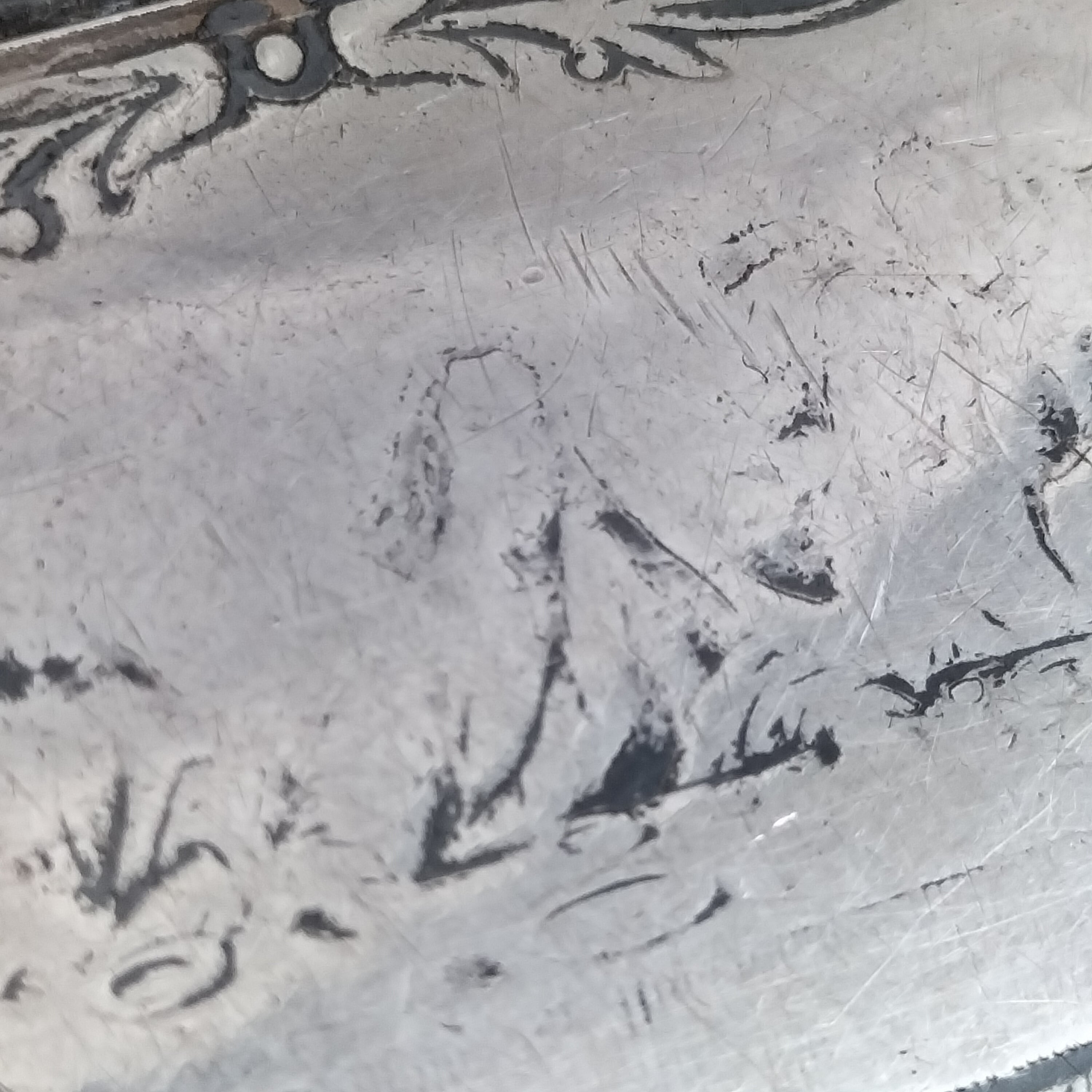 ニエロとは:(Wikipediaより):ニエロ(niello、黒金)は、硫黄、銅、銀、それに通常鉛から成る黒色合金。定まった比率はないが、銀4 : 銅2 : 鉛1 が一般的。