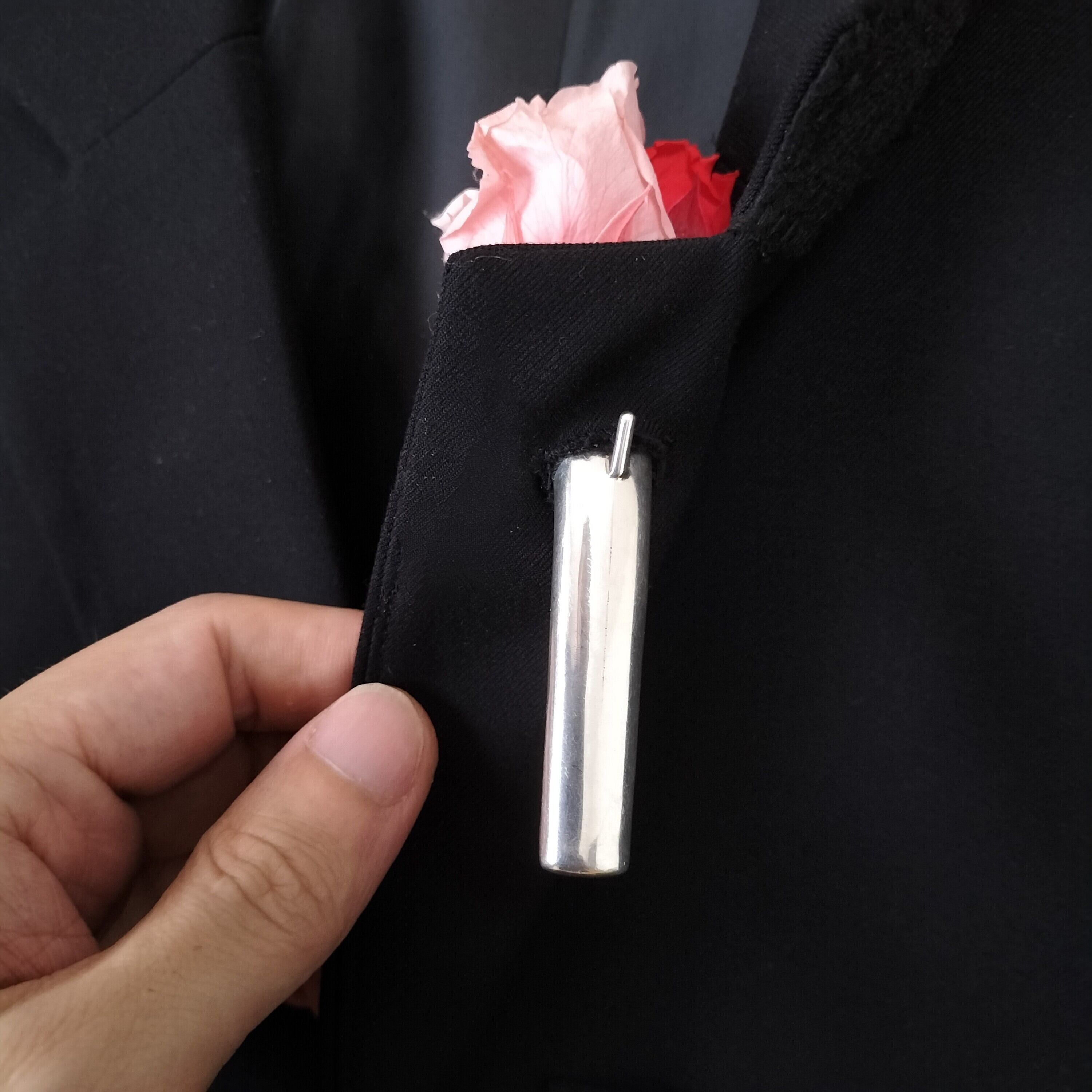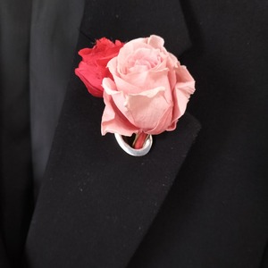 ジャケットのラペルのボタンホールに花を刺す時のアクセサリーです。