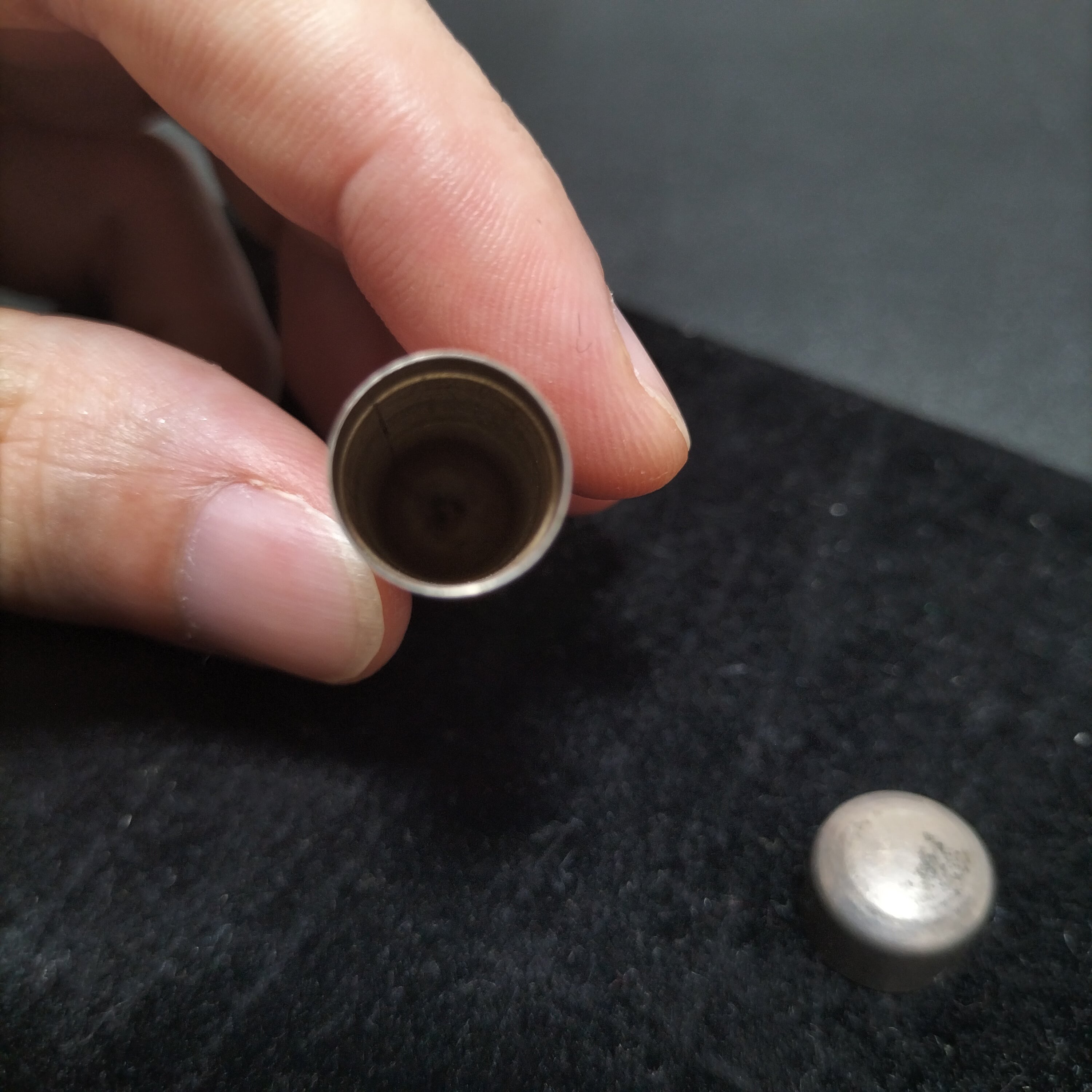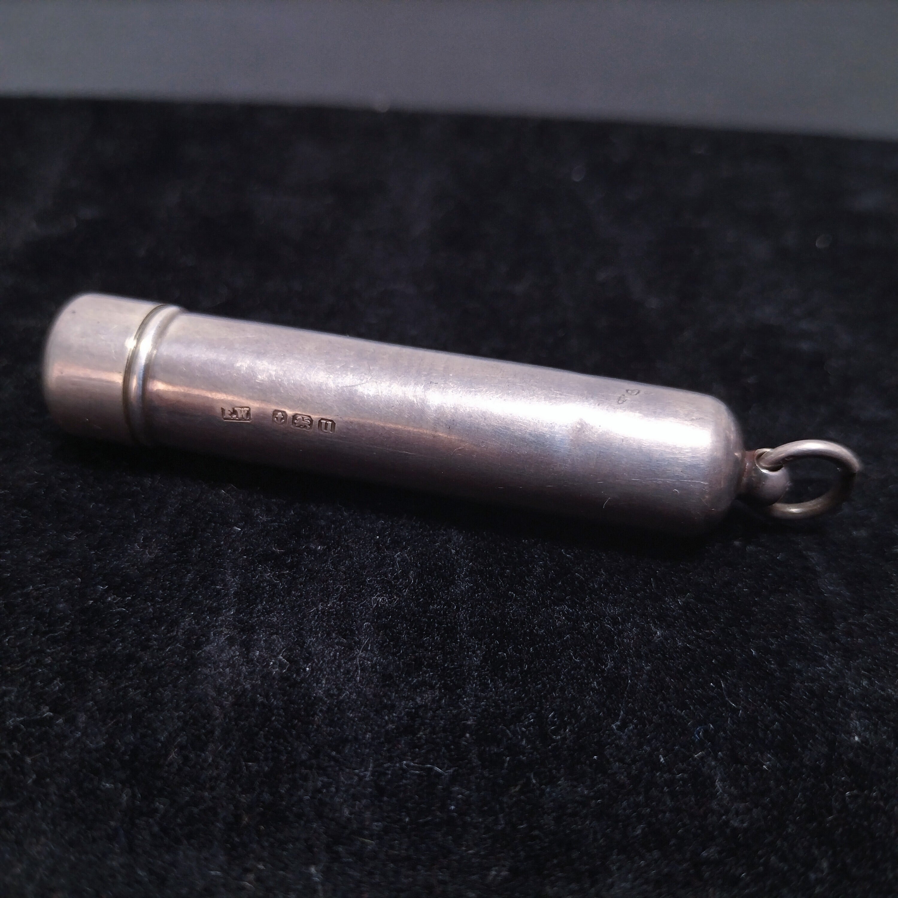 ホールマーク(刻印)より、1895年イギリスのバーミンガムで作られたスターリングシルバー製のシガーやシガレットホルダーです。そのままシガレットや葉巻を入れて、懐中時計のチェーンなどに付けるケースですが、もともとシガレットだけではなく、シガレットのフィルターの代わりのマウスピースの入れ物としても利用されていたケースでした。