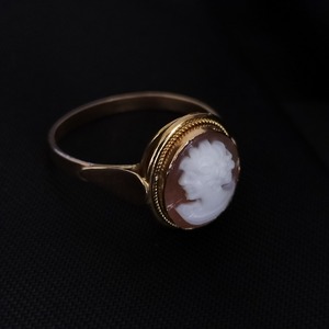 ヴィンテージ18K(18金)ゴールドとシェルのカメオリングです。