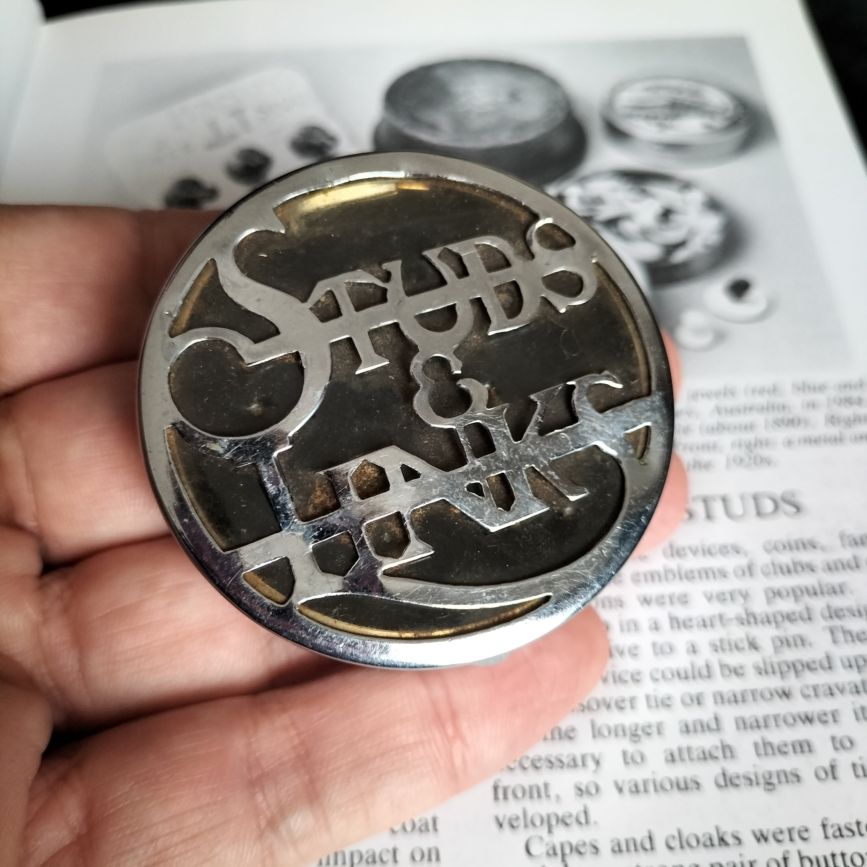スタッズとカフス用のボックスです。イギリスでミッドセンチュリーまでに流行だったボックスだそうです。アクセサリーの本にも例として写っています。
