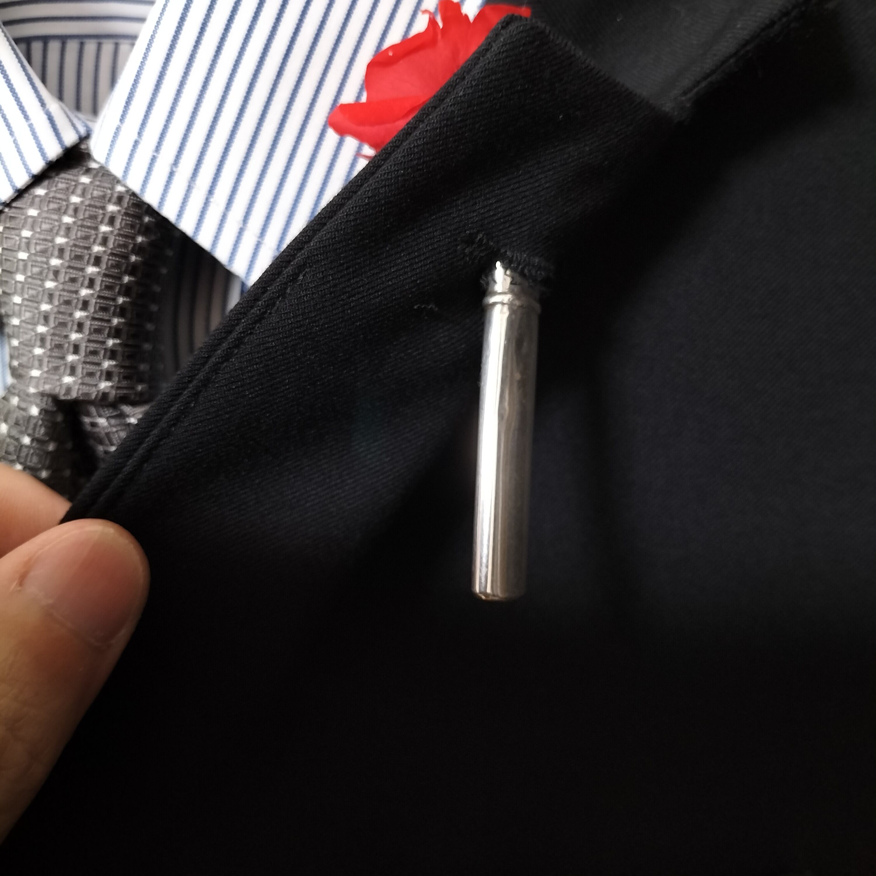 ジャケットのラペルのボタンホールに花を刺す時のアクセサリーです。