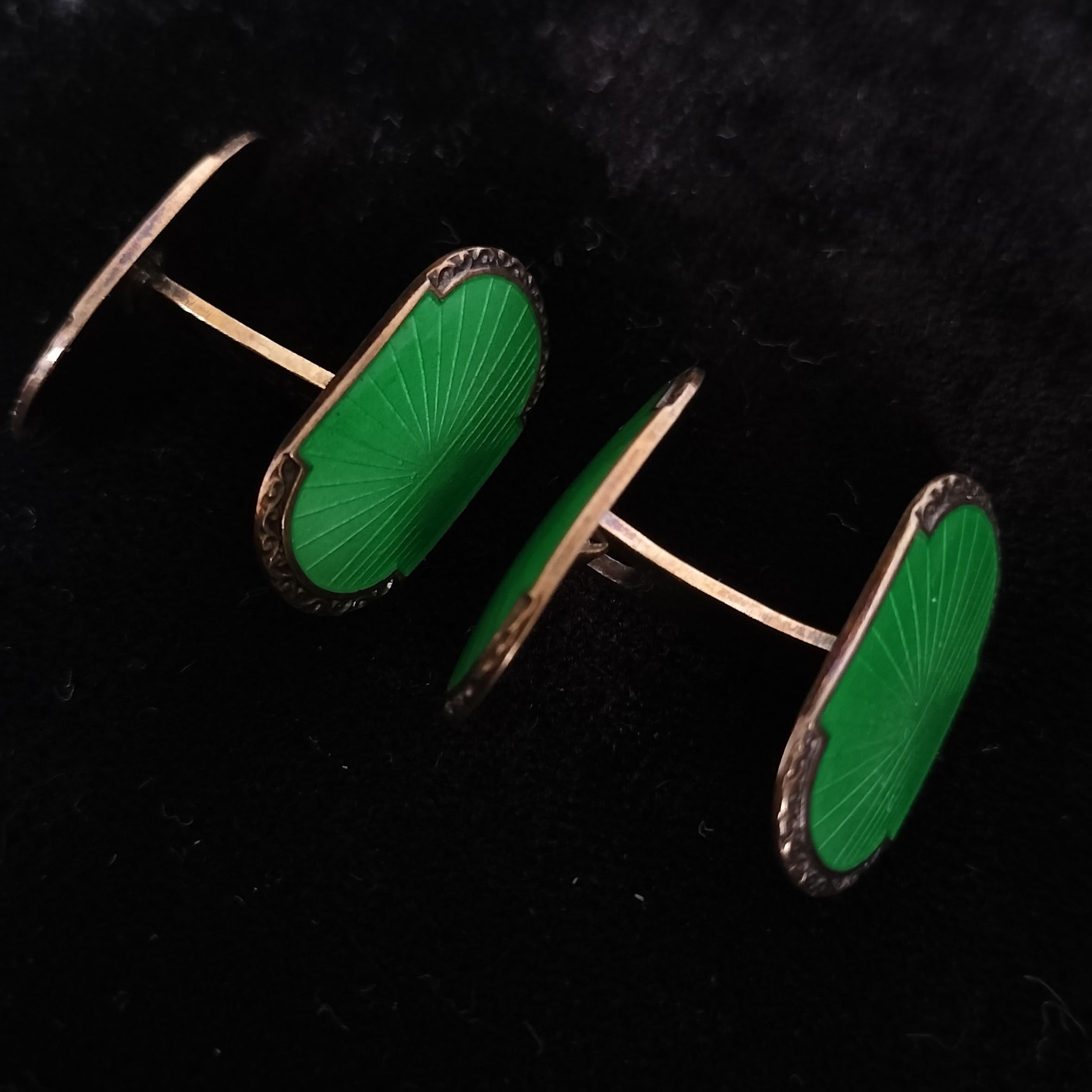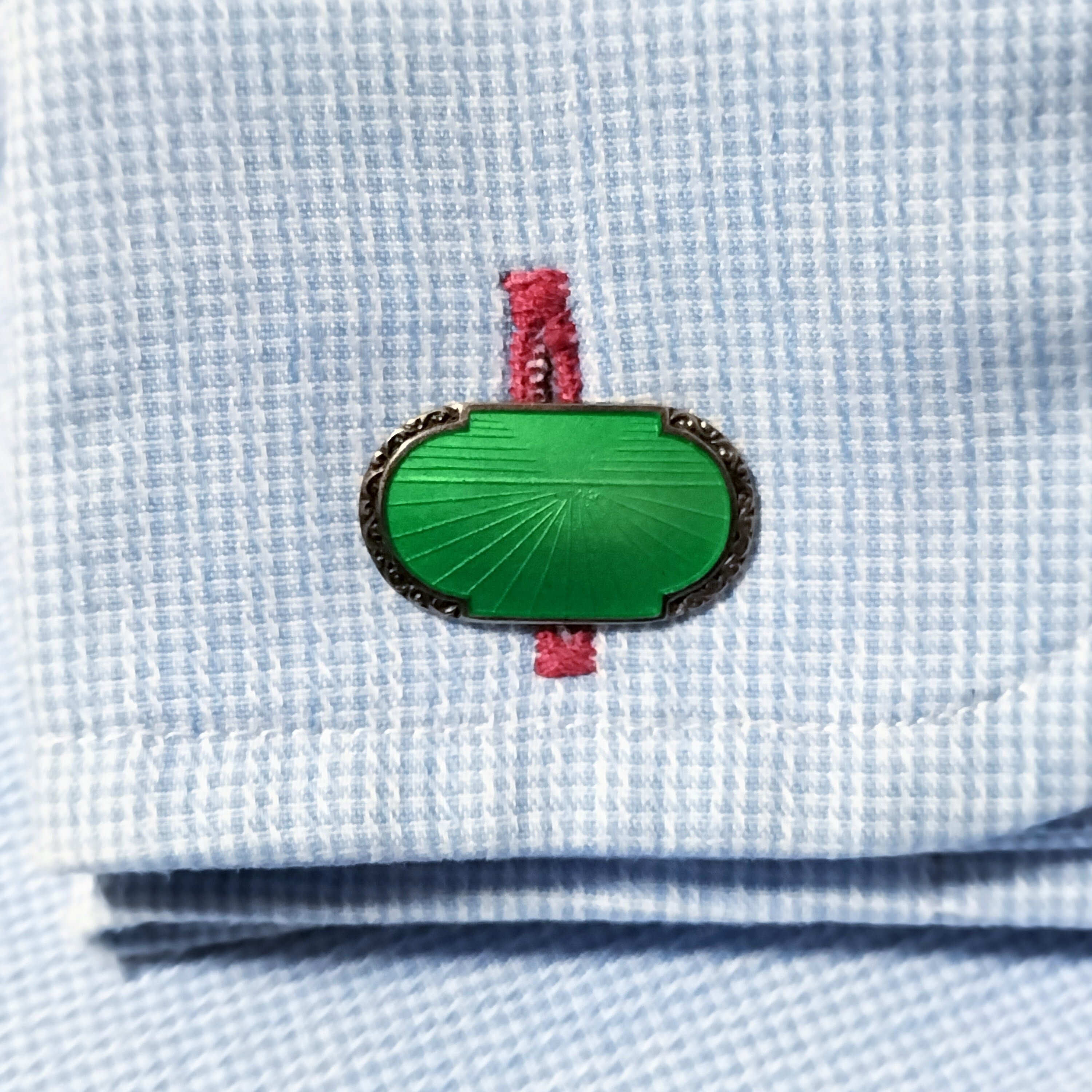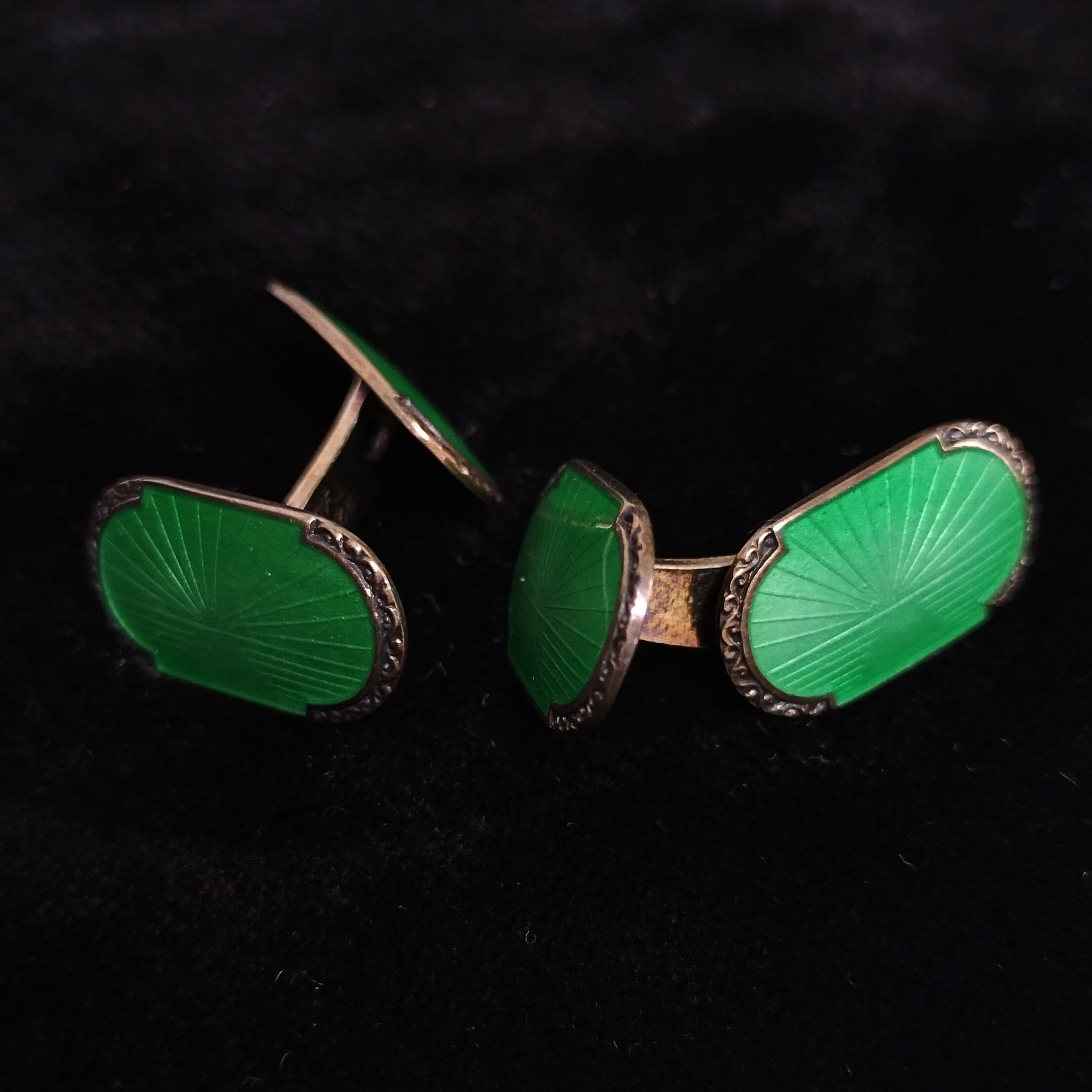 Vintage Norwegian Silver & Green Guilloché Cufflinks