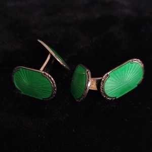 スターリングシルバーとグリーンギヨシェエナメルカフス byAndressen&Scheinpflug、ノルウェー製です(刻印あり)シルバーの本体にゴールドヴェルメイユのメッキがあり、グリーン色と素敵なコントラストしています。