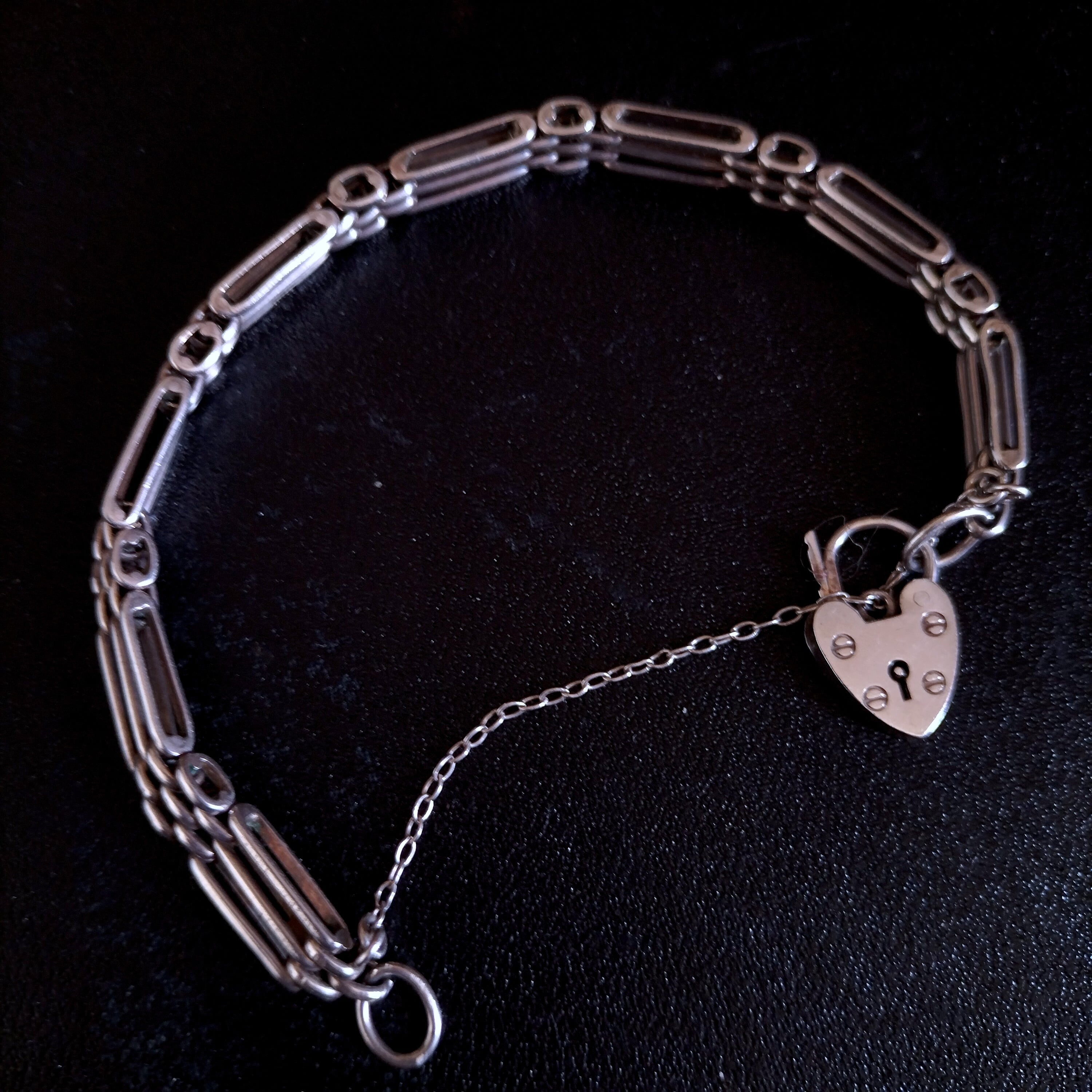 1981年製の、美しいヴィンテージのホールマーク入りスターリングシルバー製ゲートリンクブレスレットです。