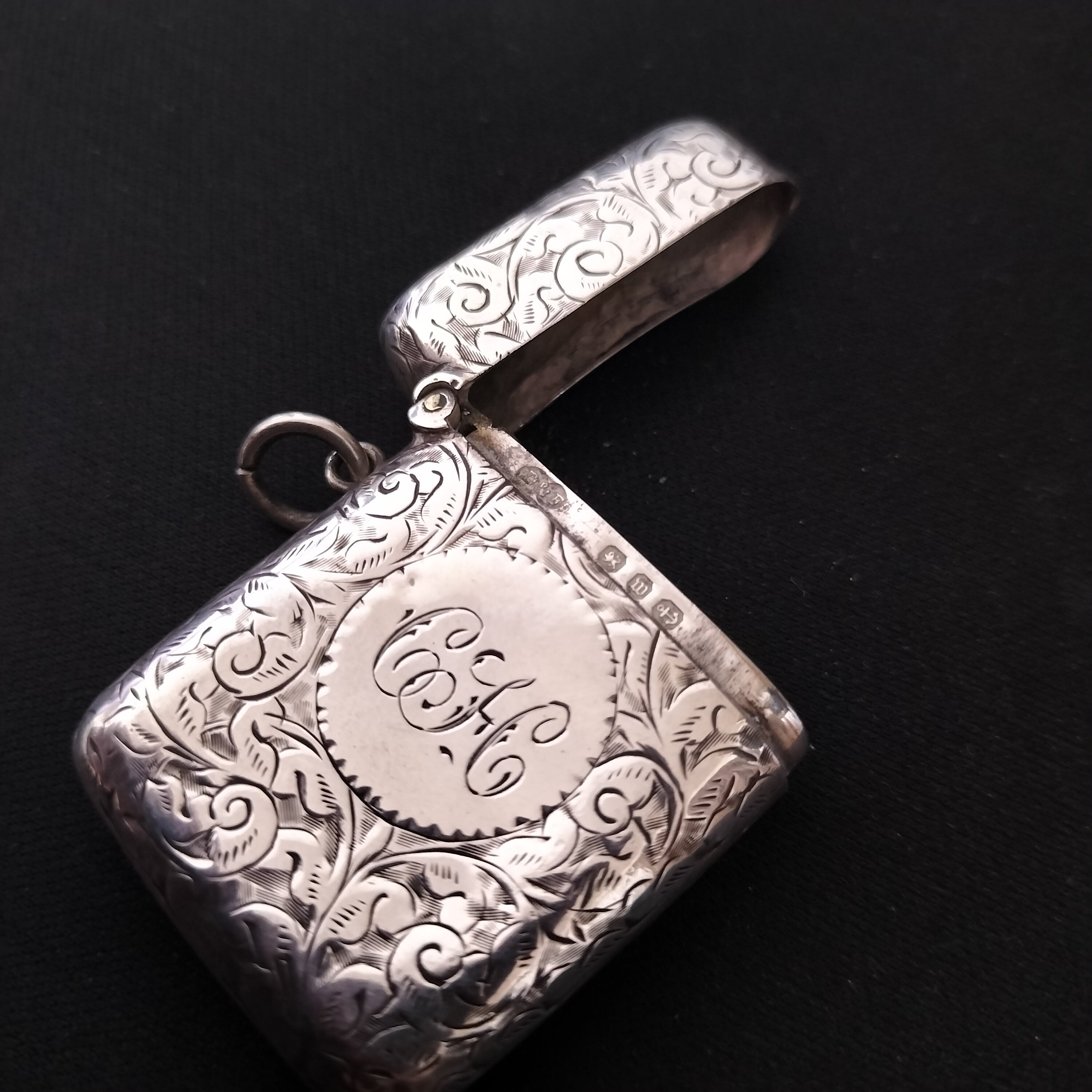 130年前のアンティークスターリグシルバー製マッチケース、イギリス製です。