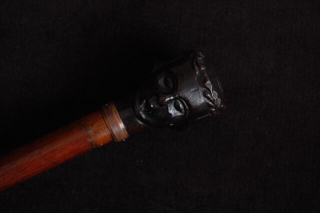 こちらのステッキの場合,1820年代のヘッド部分が19世紀末のシャフトにつけられたそうです.ヘッドとシャフトの組み合わせは19世期末にされたと思われていますが,ヘッドとシャフトの間にある真鍮のカラーはイギリスのアンティークディーラーが付けたそうです.