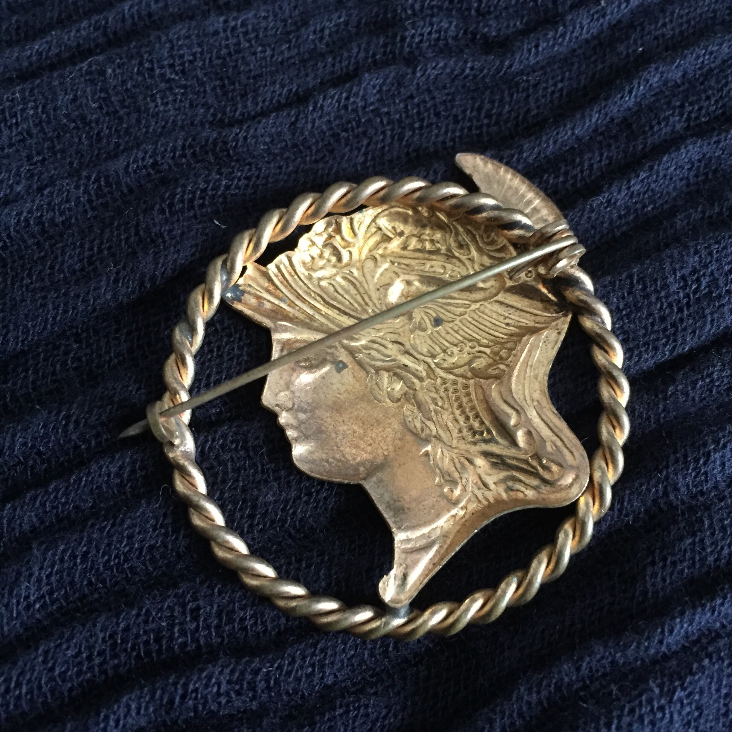 イタリアで買い付けた1900年代初期(推定)のヘルメースの横顔のブローチです