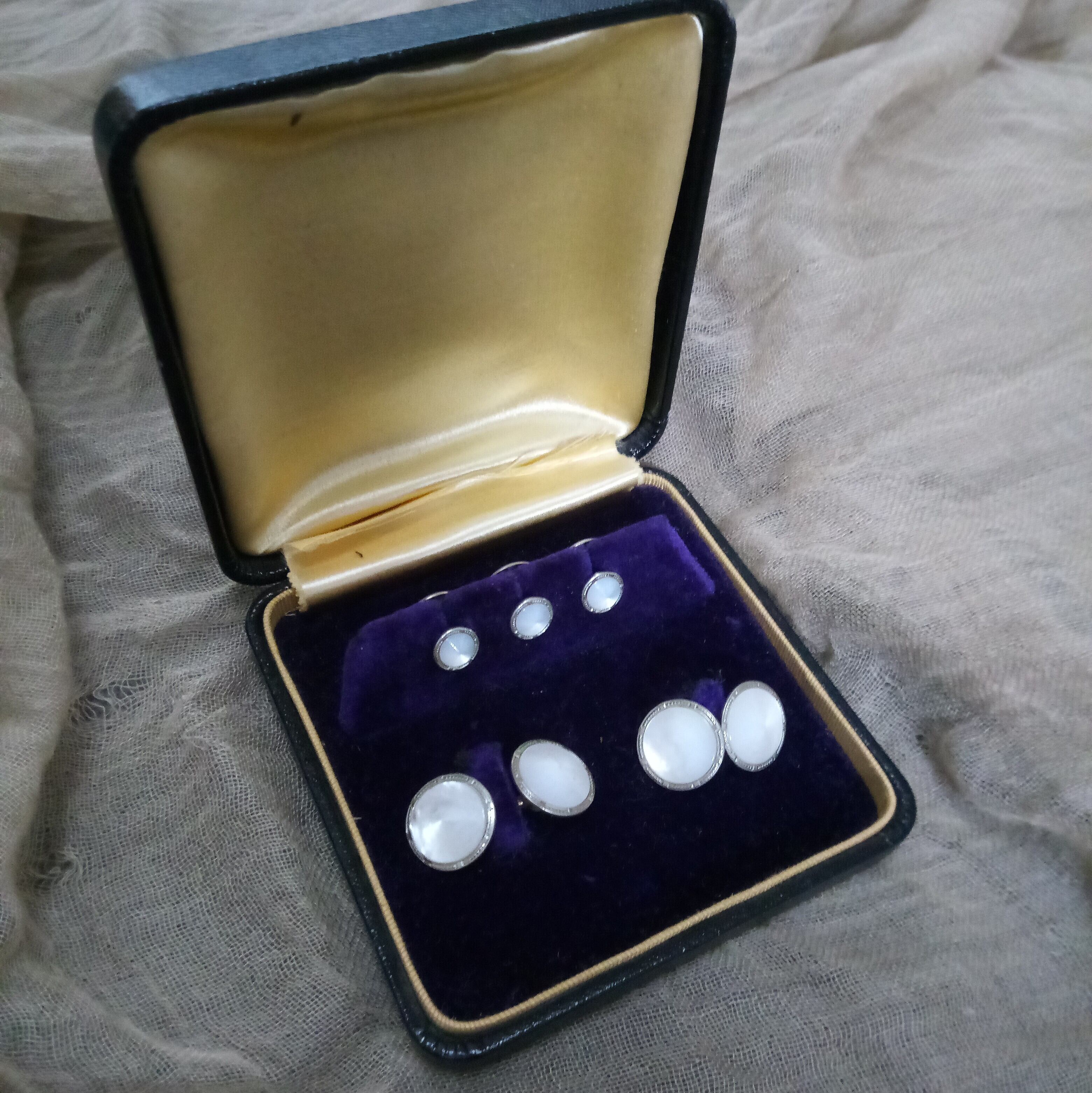 アンティークマザーオブパール製カフスとスタッズセットです(オリジナル箱付き)。