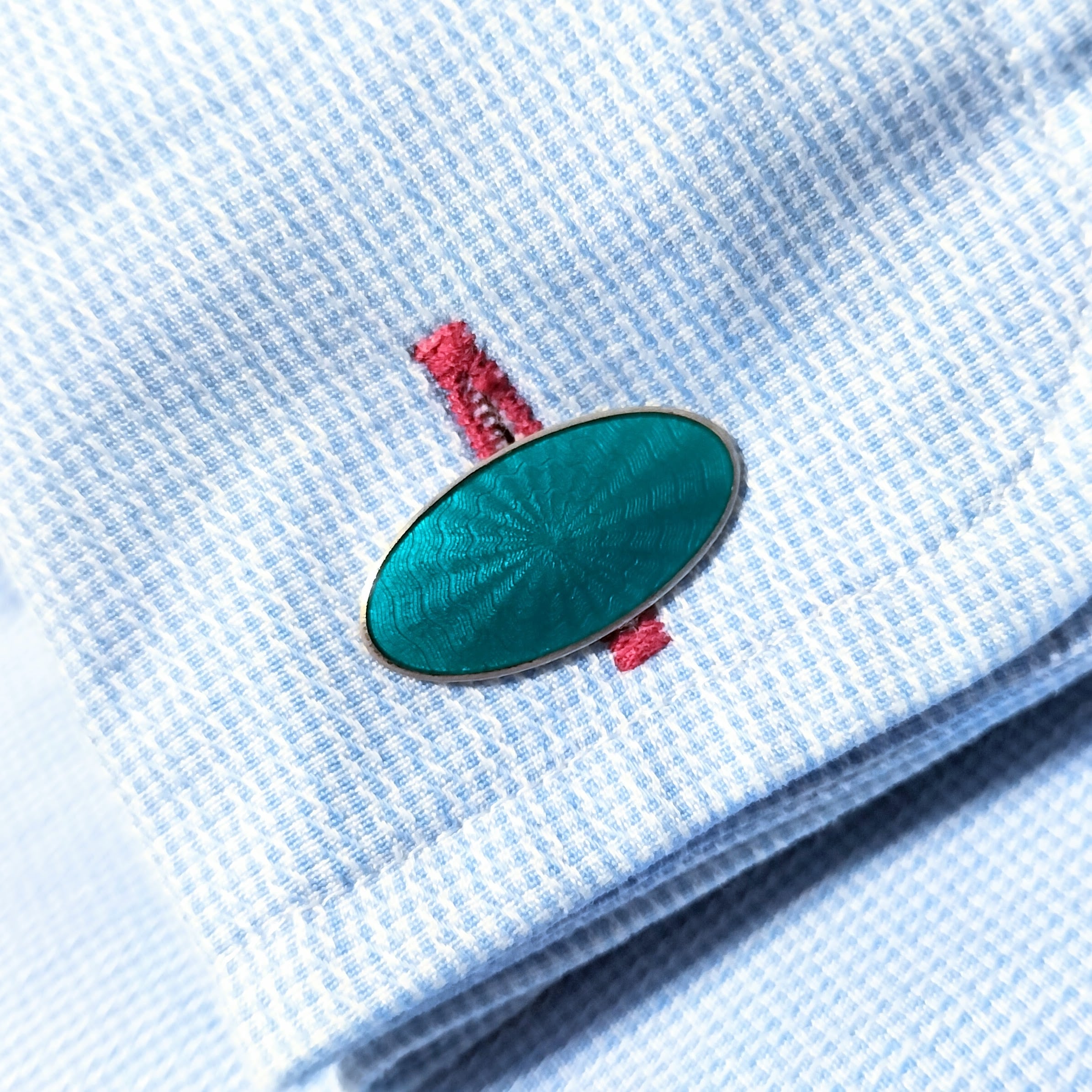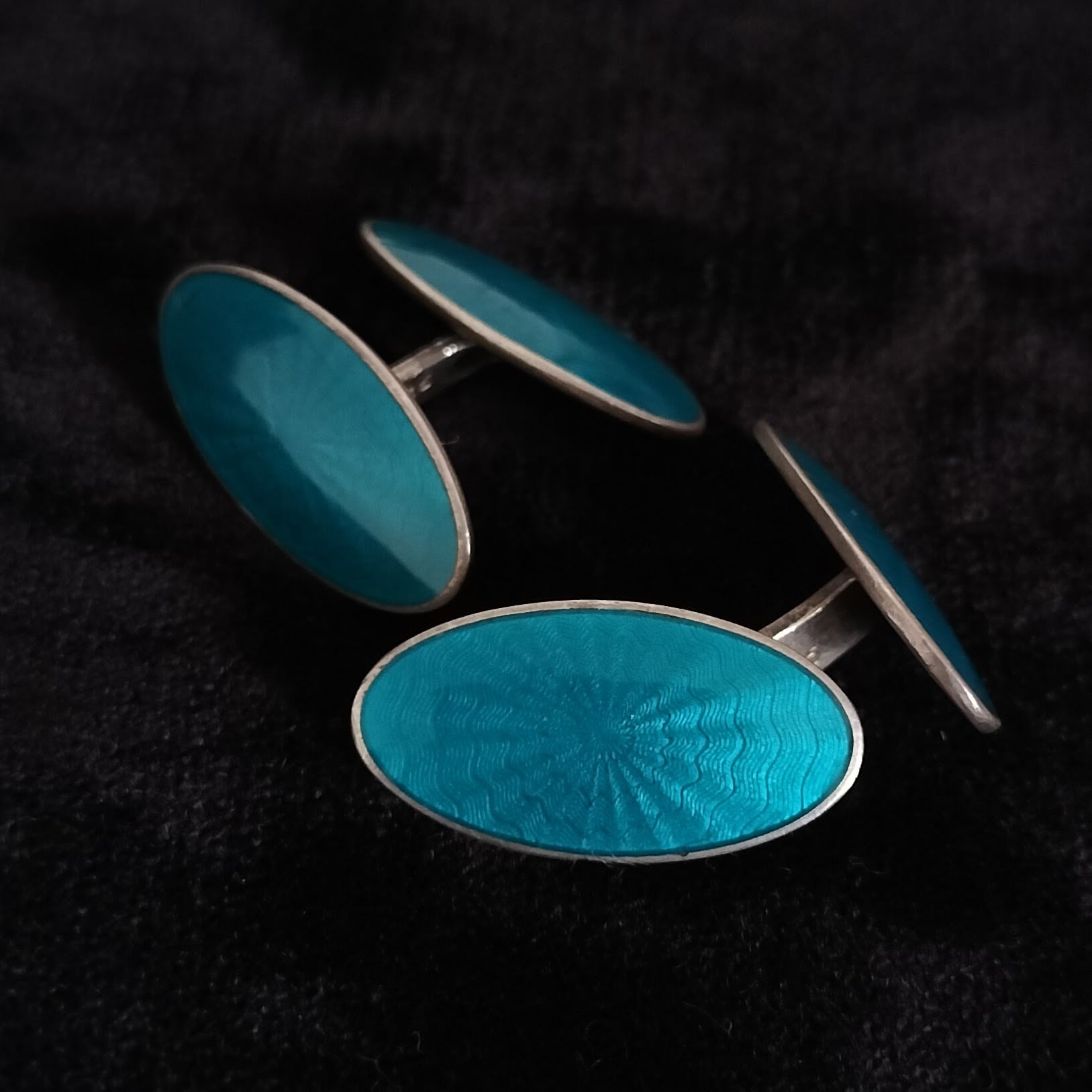Vintage Norwegian Silver & Blue Guilloché Cufflinks