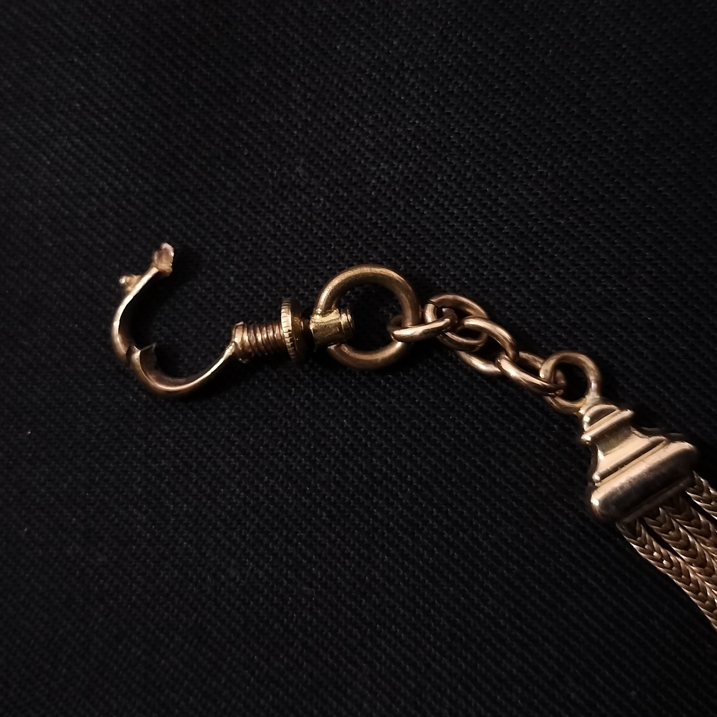 フランス1800年代末1900年代初期のゴールドフィルド(金張り)とオニキスの懐中時計チェーンです.