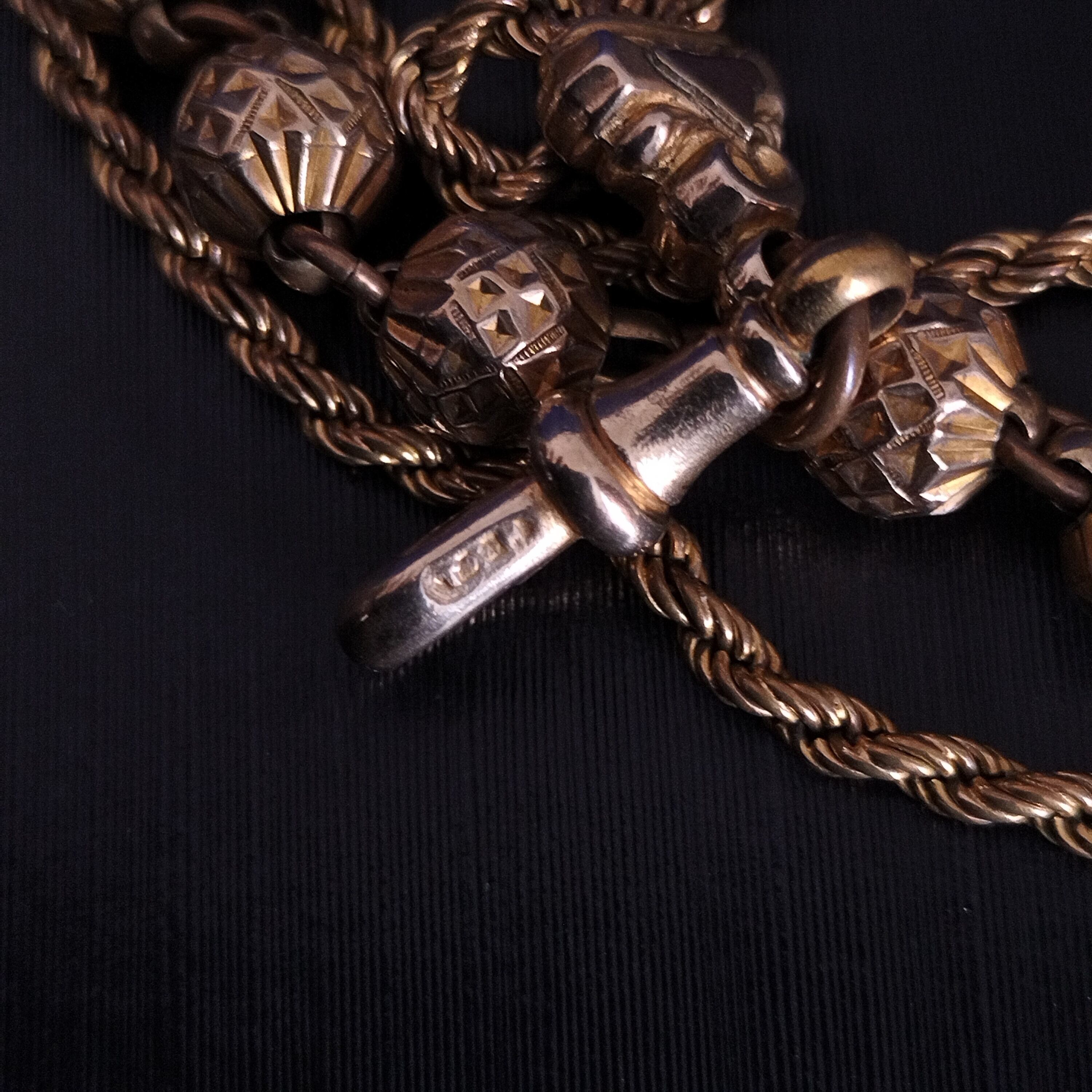 フランスの19世紀末/20世期初期(推定)のアンティークゴールドフィルド(金張り)ポケットウォッチ(懐中時計)用チェーン。