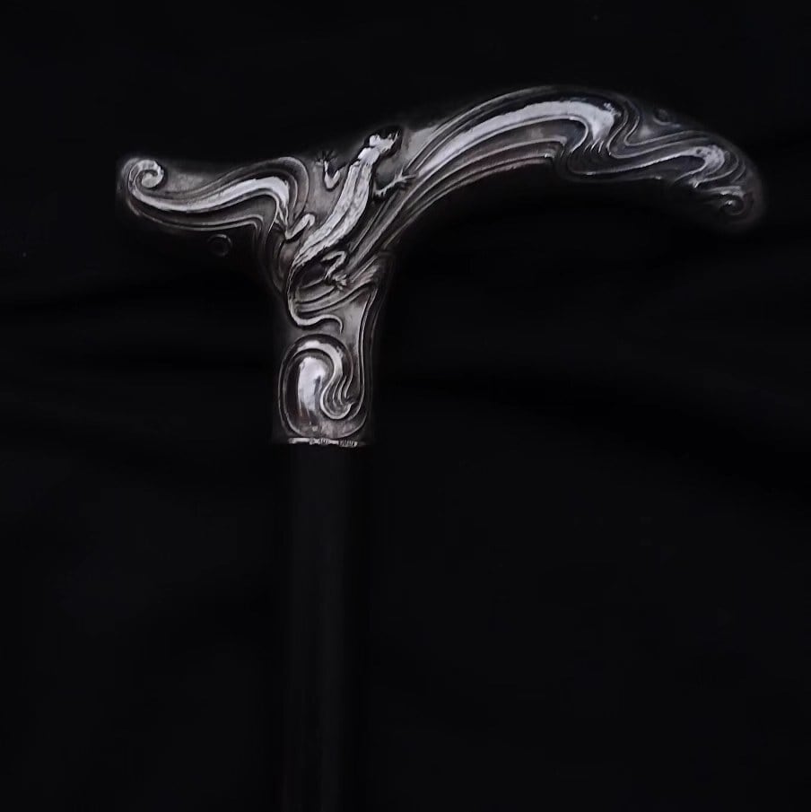 Bee & Lizard Art Nouveau Silver Antique Walking Stick