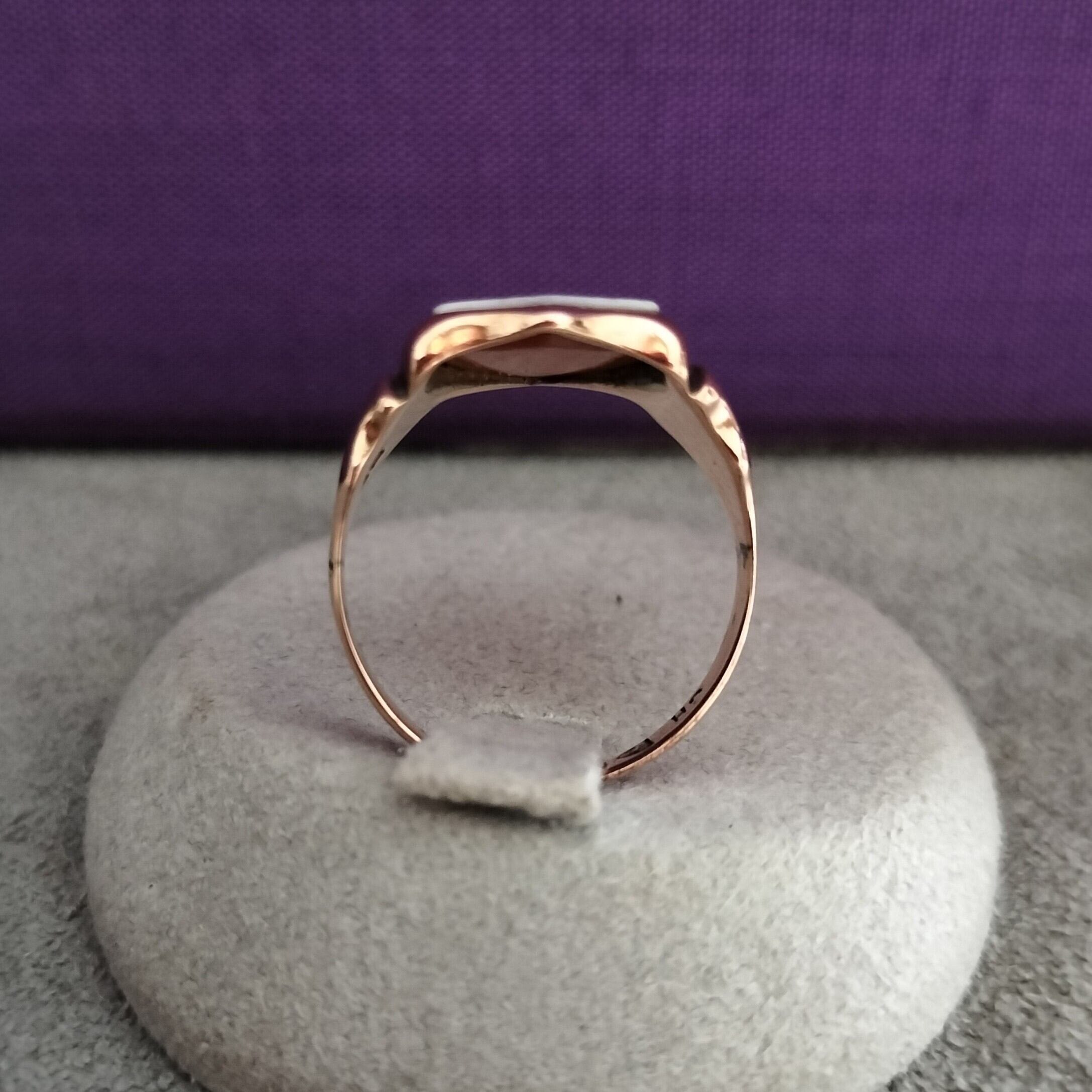 ホールマークより、1899年にイギリスのチェスターで作られたリングです。「375」のマークの意味は9ct(9金)のゴールドです。