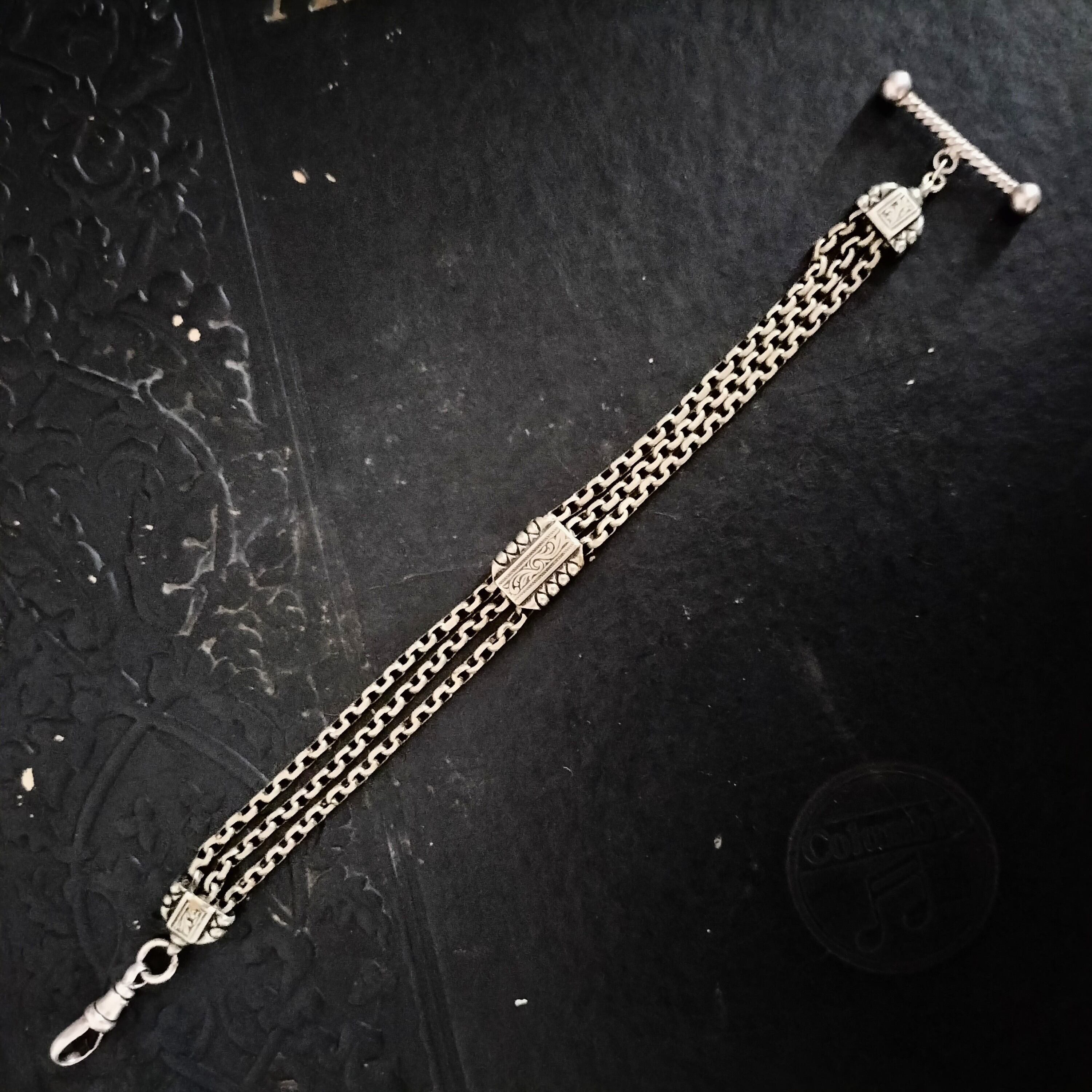 フランスの19世紀末〜20世紀初期のホワイトメタル製ポケットウォッチチェーンです。