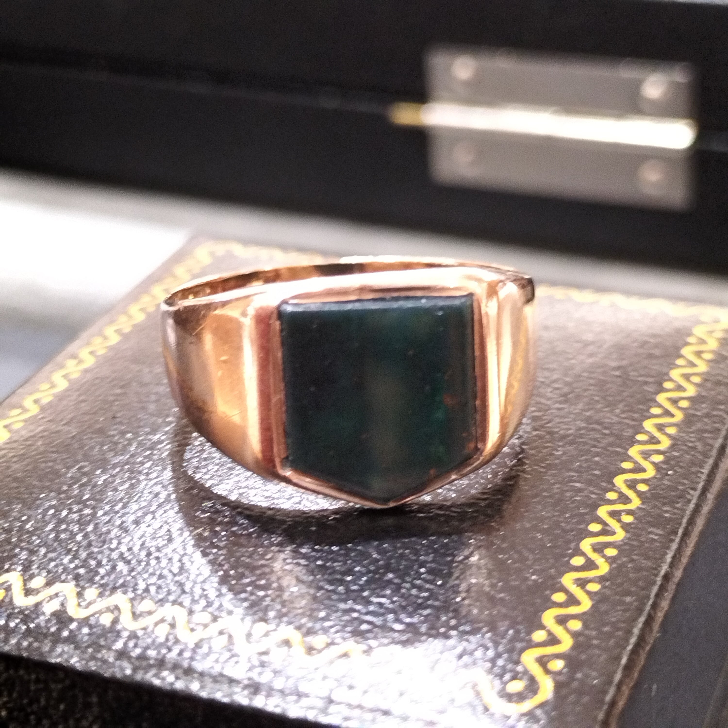 Antique 1889年 Gold Bloodstone Shield Ring UK